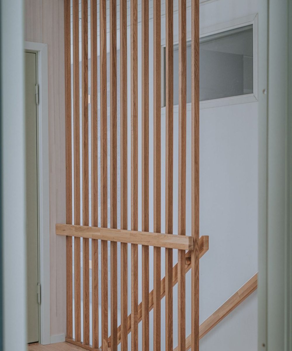 Lappiportaan massiivipuu rimaseinät ja säleiköt sopivat niin porrastilan varusteluun kuin muun kodin sisustamiseen.